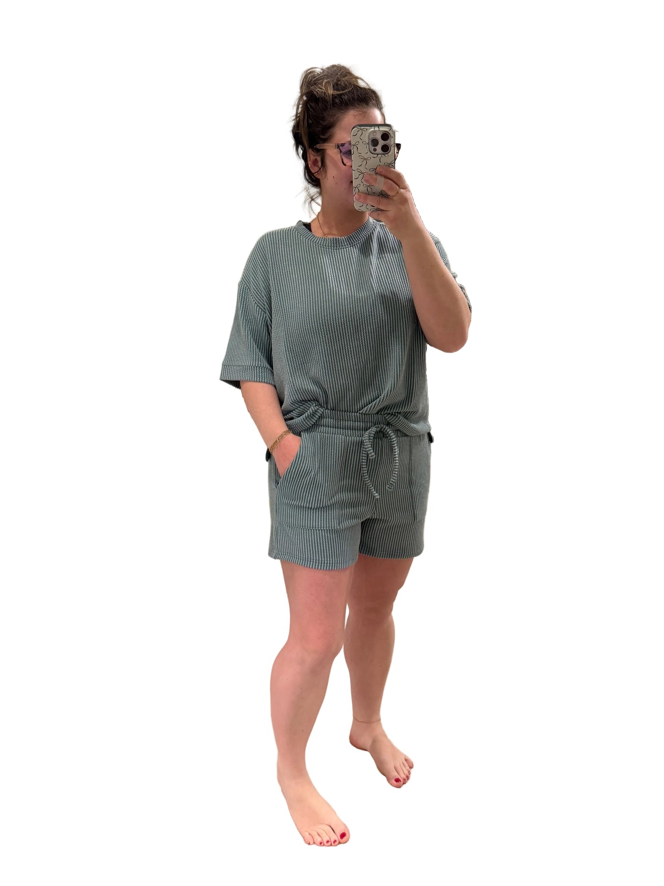 The Ribbed Short Set in Jade features a relaxed fit, providing optimal comfort for various activities. This design allows for ease of movement, making it suitable for both lounging and casual outings. The fabric's ribbed texture enhances breathability, ensuring a pleasant wearing experience throughout the day.