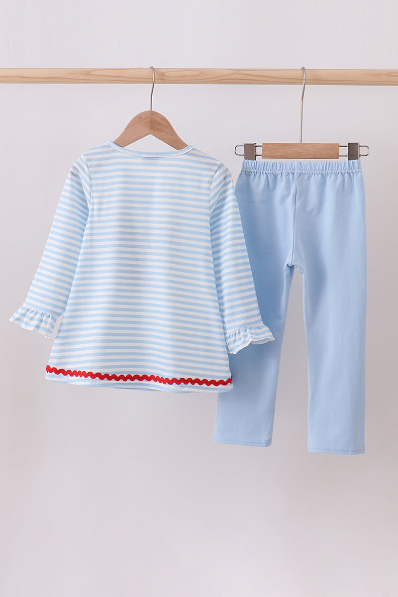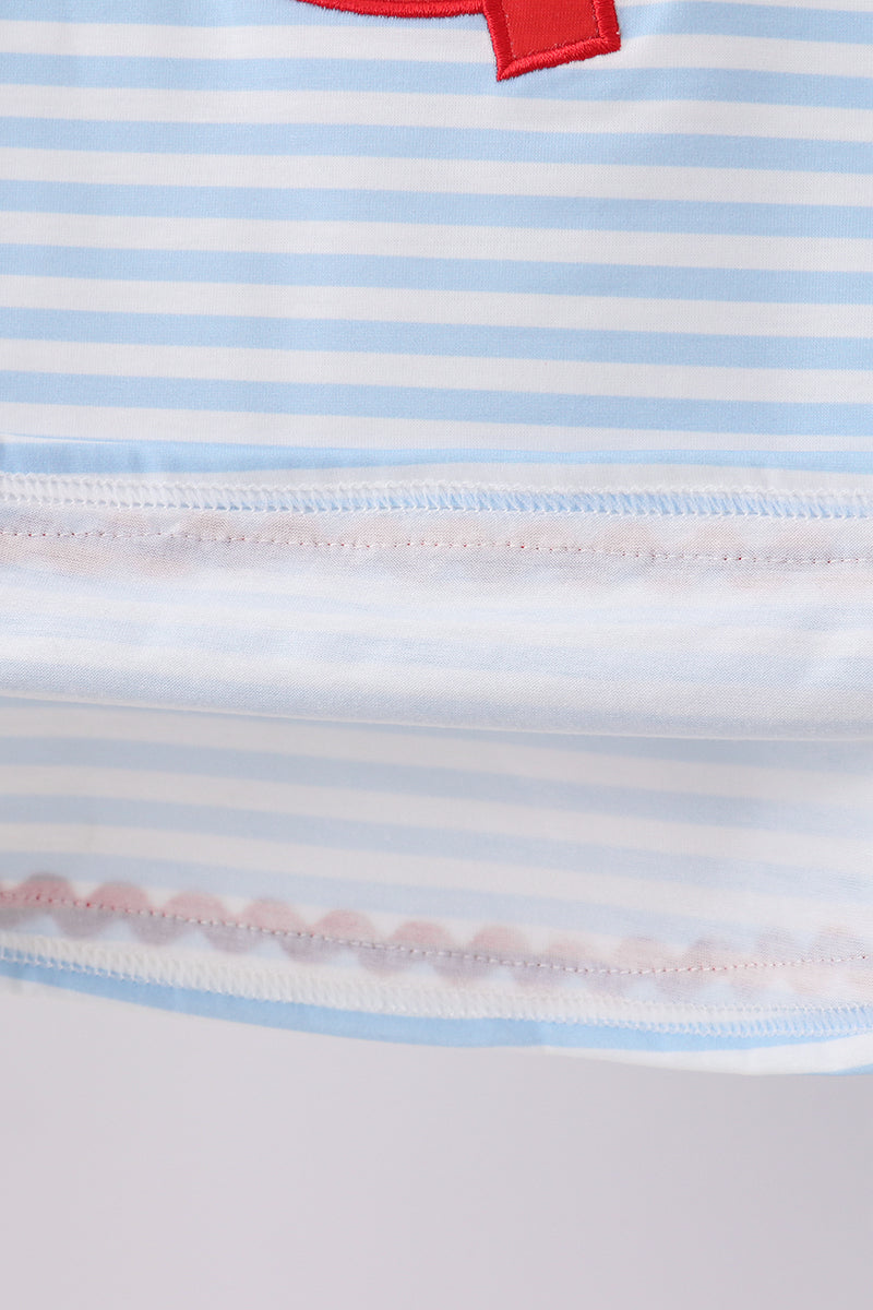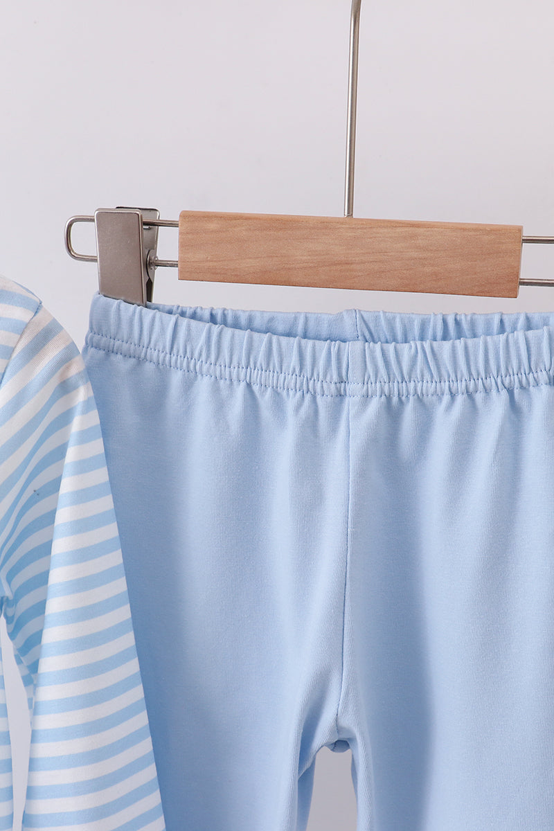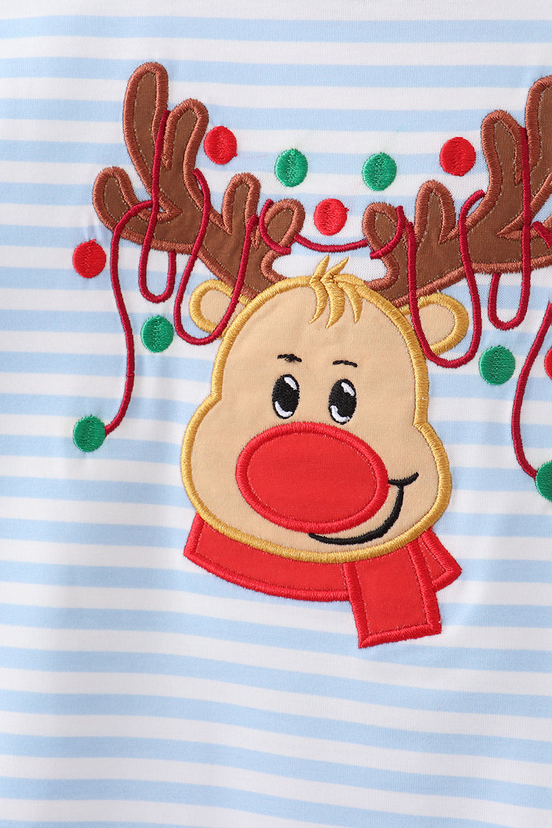 Bring festive fun to your little one’s wardrobe with this Blue Stripe Reindeer Applique Ruffle Pants Set. Featuring charming reindeer appliques and playful ruffle details, this cozy outfit adds a touch of whimsy to any day. Soft striped fabric ensures comfort while the unique design sparks smiles and holiday cheer wherever they go. Perfect for playdates or casual outings, this set combines style and ease in one delightful package.