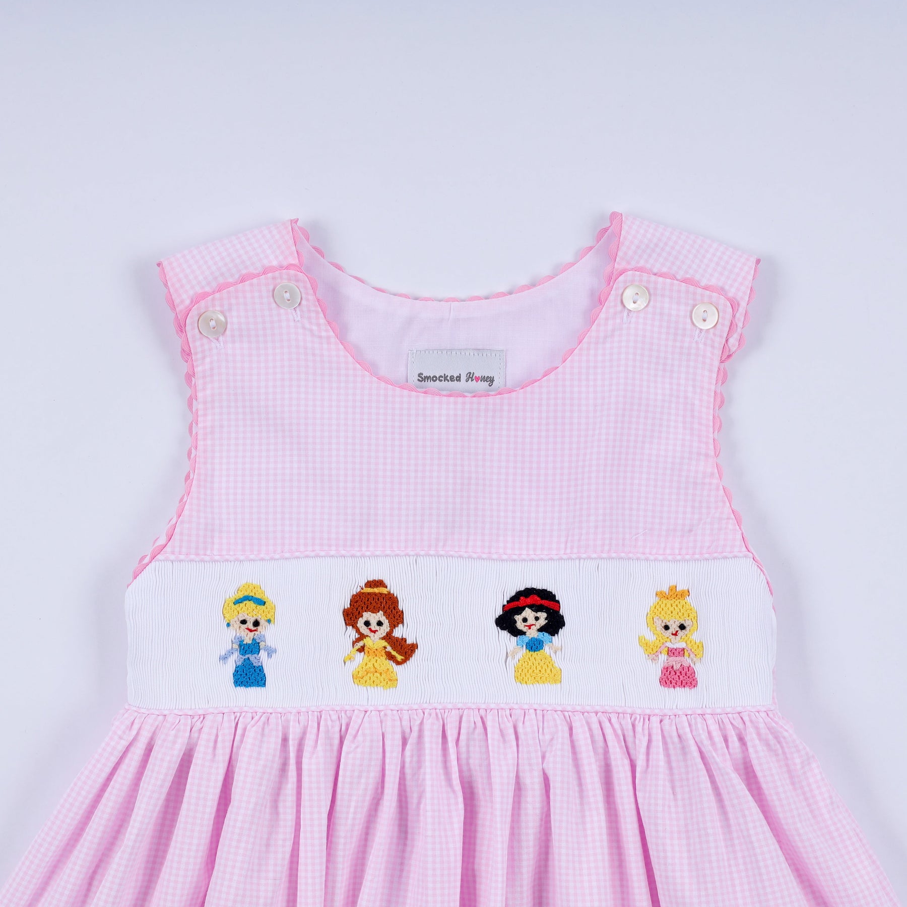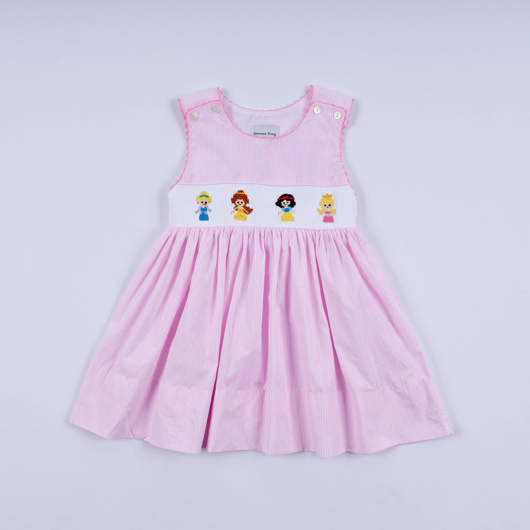 Twirl into enchantment with this darling pink princess dress, where timeless plaid meets whimsical hand-smocked details. Each delicate smock is crafted with care, creating beautiful texture and dimension across the bodice. The soft pink hue and classic plaid pattern make it perfect for special occasions, dress-up adventures, or simply feeling like royalty every day. A charming choice for little ones who love a touch of magic and elegance.