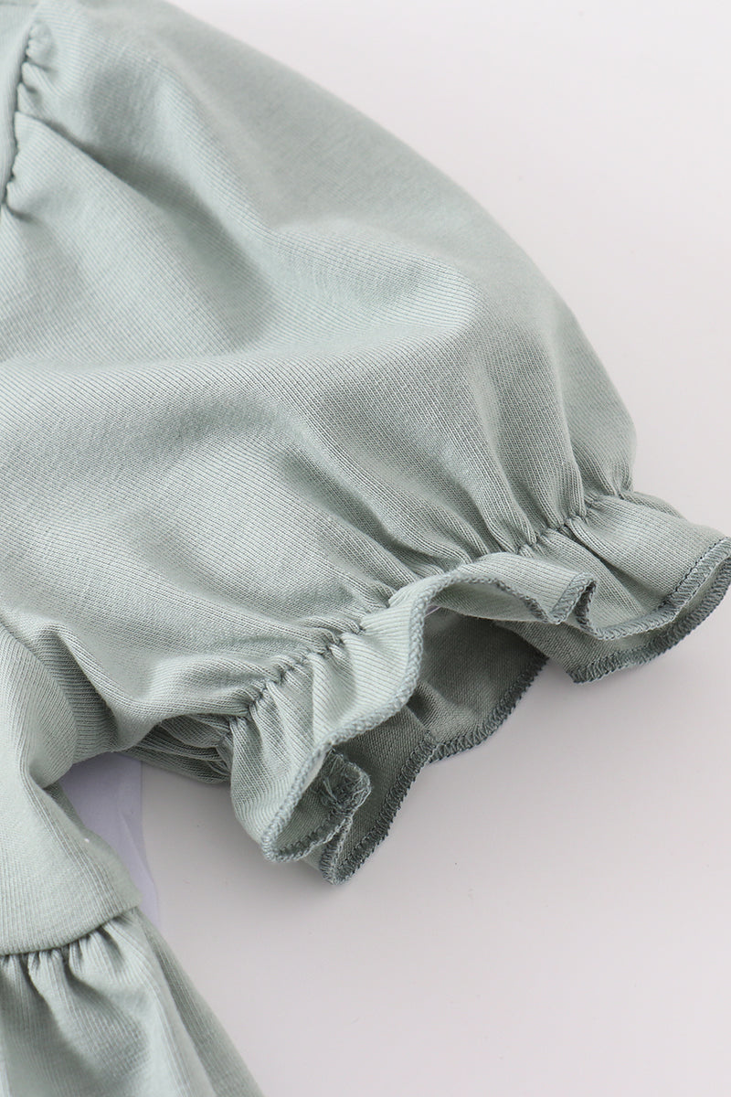 This Sage Farm French Knot Girl Set is the perfect combination of country chic and delicate charm. The beautiful embroidery and French knot details add a unique touch to the classic sage green color. Your little girl will look adorable and stylish in this set.