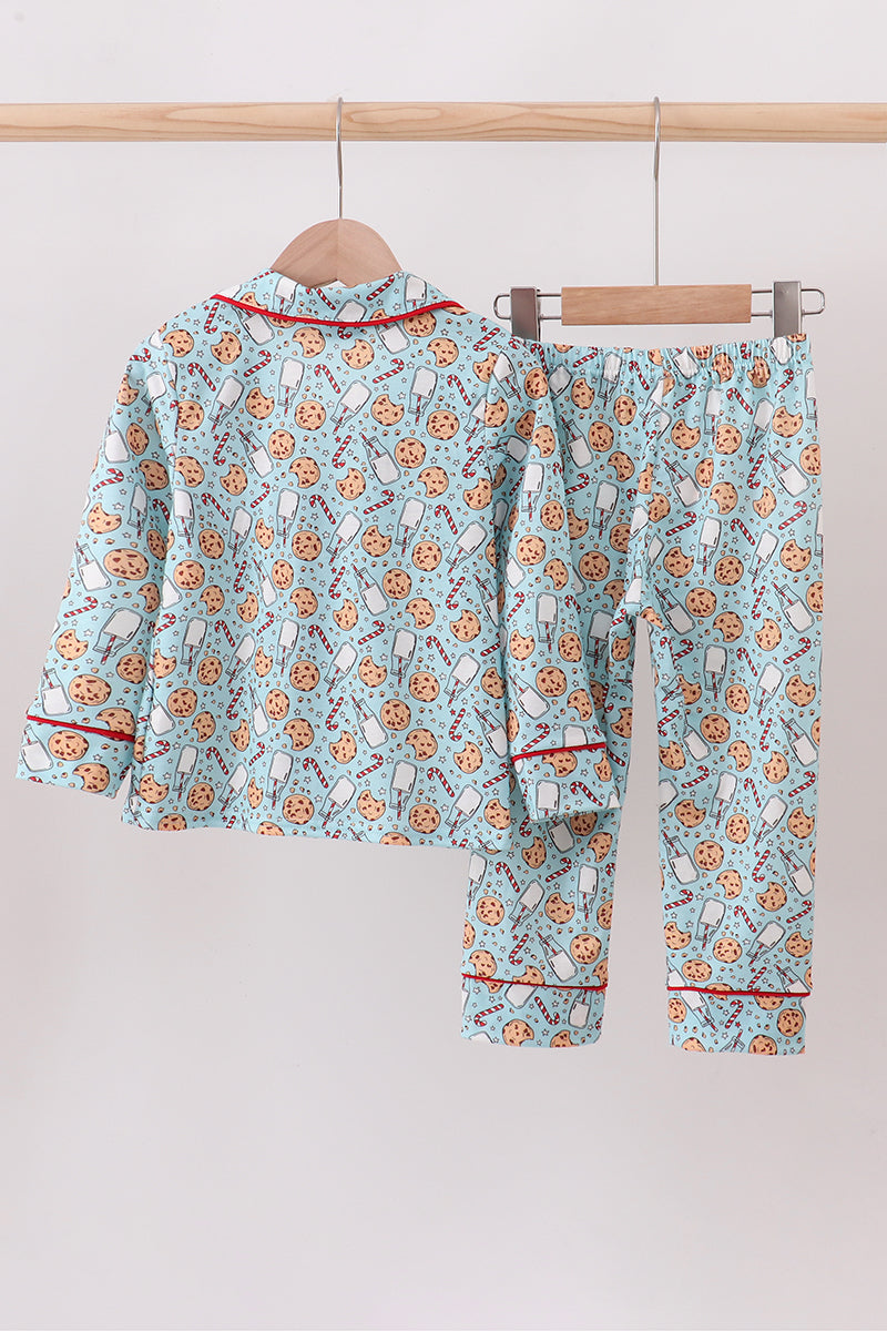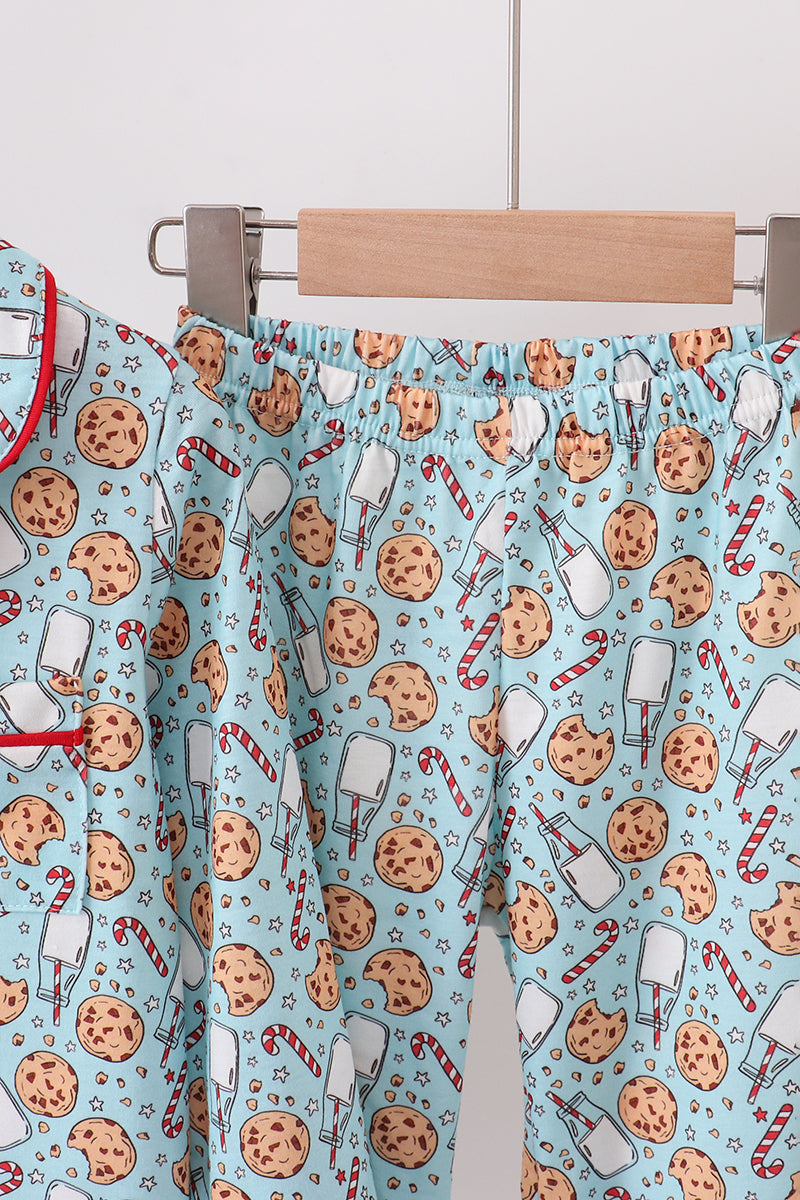 Get cozy and festive with this Santa Claus cookie print pajama set! Perfect for holiday mornings or winter nights, these pajamas bring a playful touch to your seasonal wardrobe. The charming cookie designs add a sweet holiday spirit while keeping you comfy all night long. Ideal for lounging or gifting, this set makes every cozy moment a little more magical.