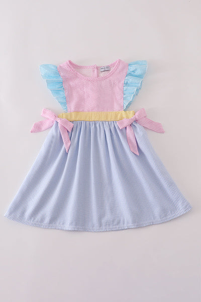 Multi seersucker stripe ruffle dress