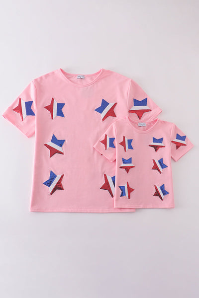 Pink star sequin mom&me top