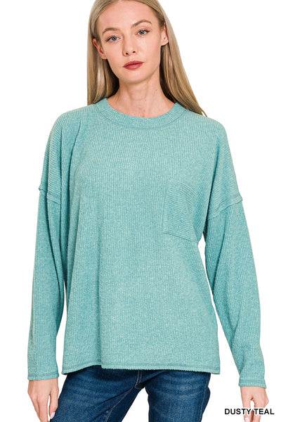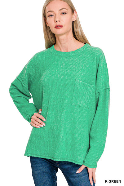 RIBBED BRUSHED MELANGE HACCI SWEATER WITH A POCKET