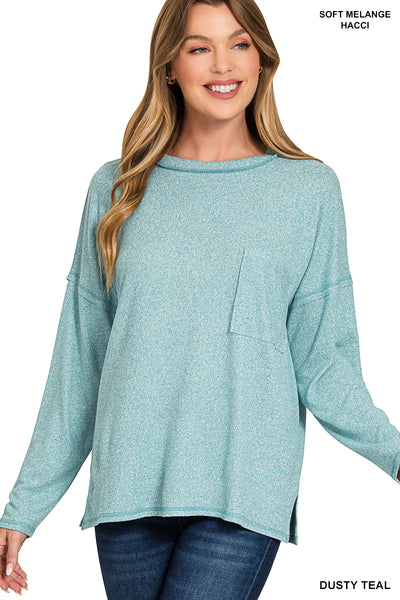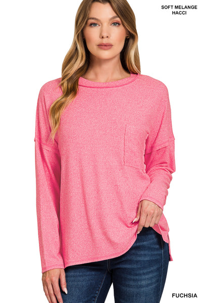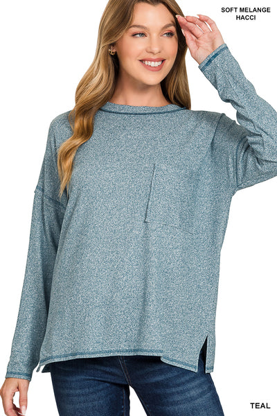 SOFT MELANGE HACCI ROUND-NECK LONG SLEEVE TEE