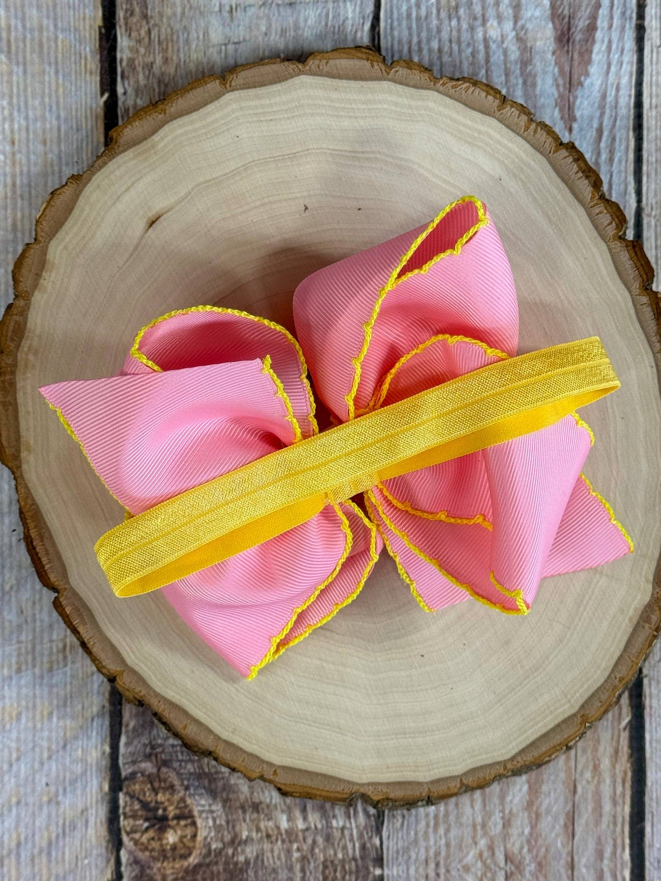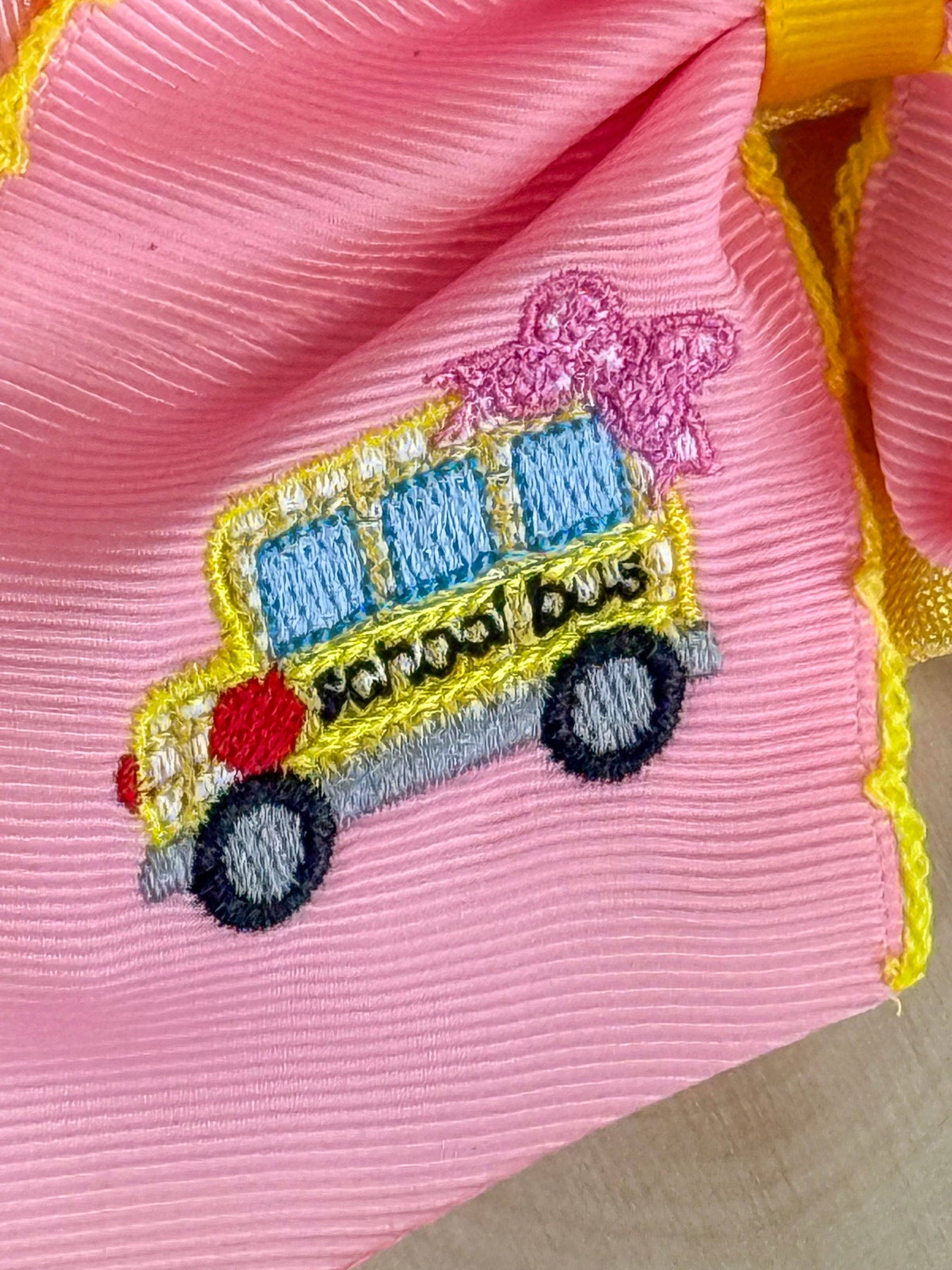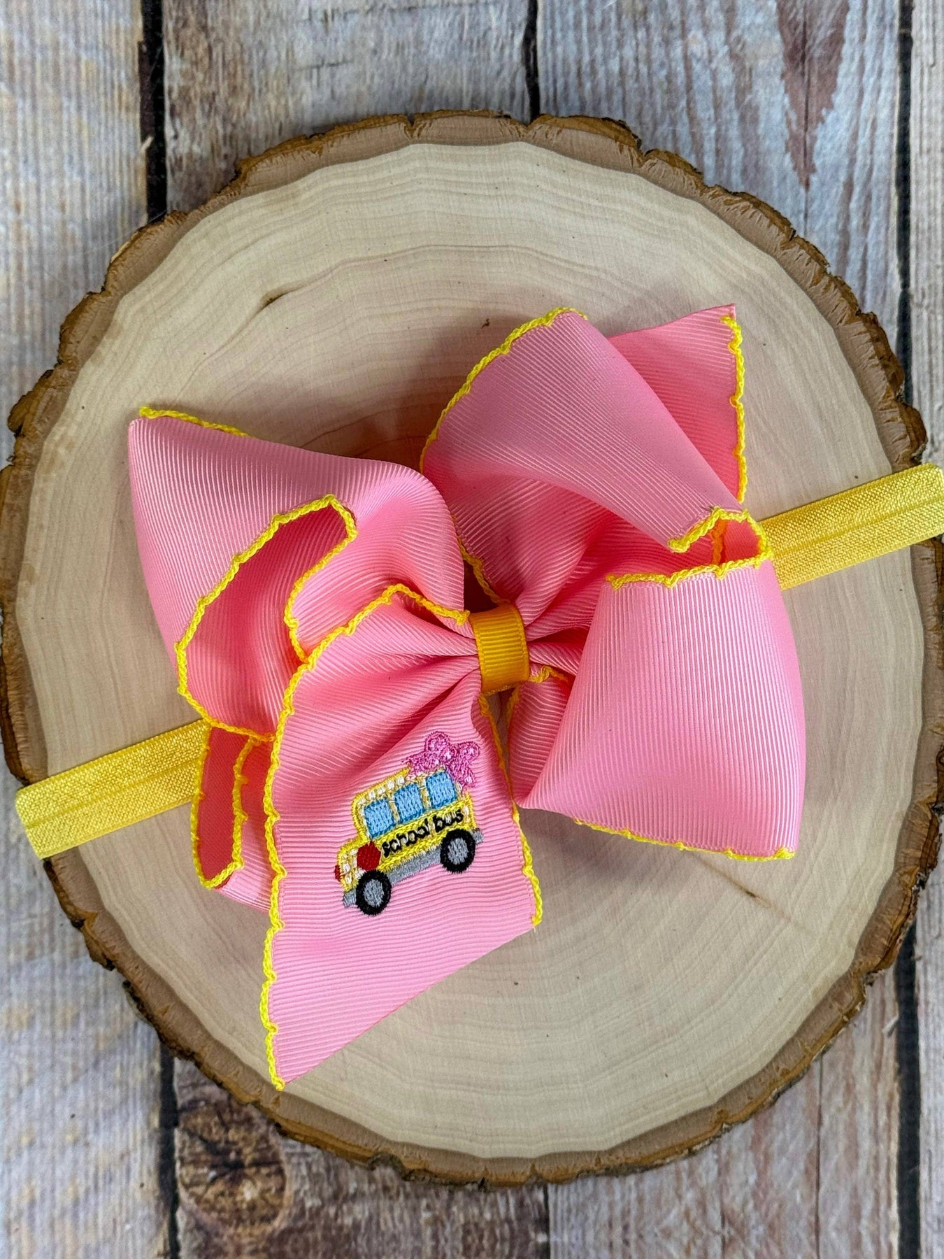 Get on board with this adorable School Bus Embroidered Moonstitch Bow Headband! The perfect accessory for any little one's back-to-school look. Stand out in style (and safety) with this quirky and fun headband. A must-have for every trendy student!
