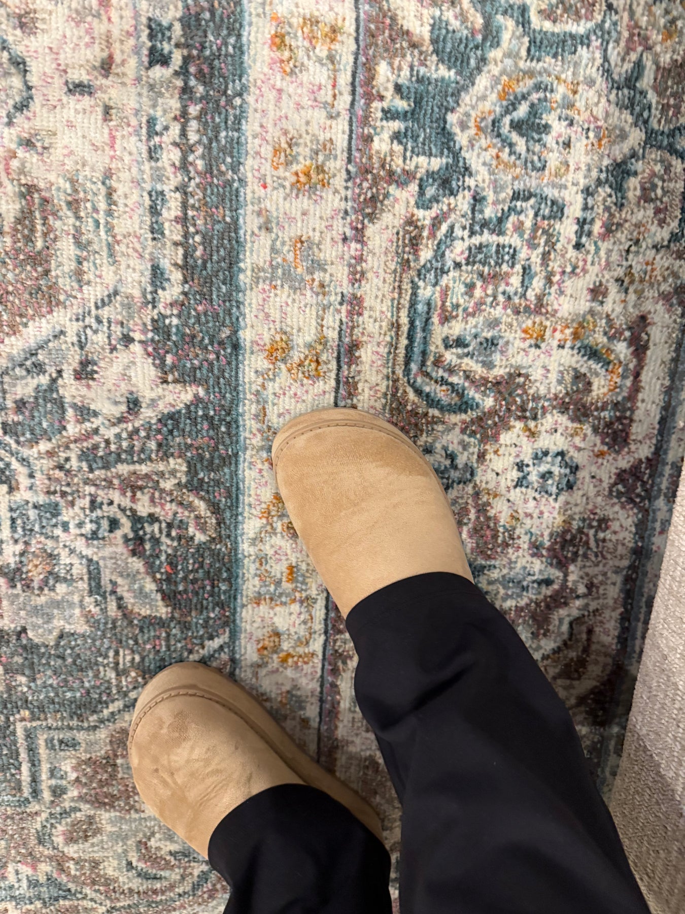 These are so comfy! They do run 1 size big so we suggest sizing down 1 whole size. Kaylee is usually size 8 wearing a size 7!