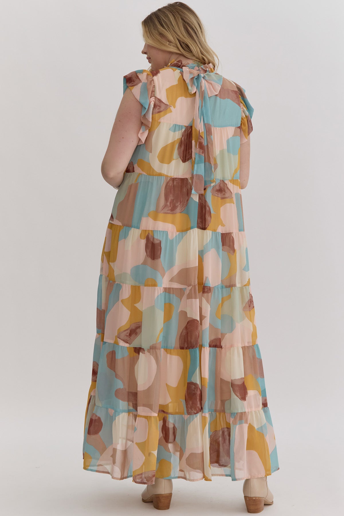 The Curvy Abstract Dress is true to size and features an eye-catching abstract design. Made for the modern woman, this dress will flatter your curves and make a statement. Perfect for any occasion, embrace confidence and style with this must-have piece.