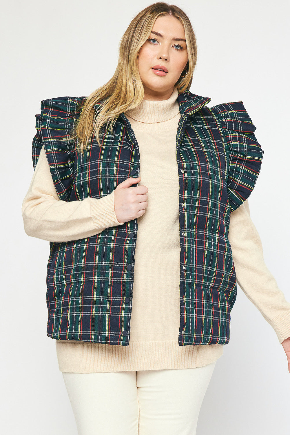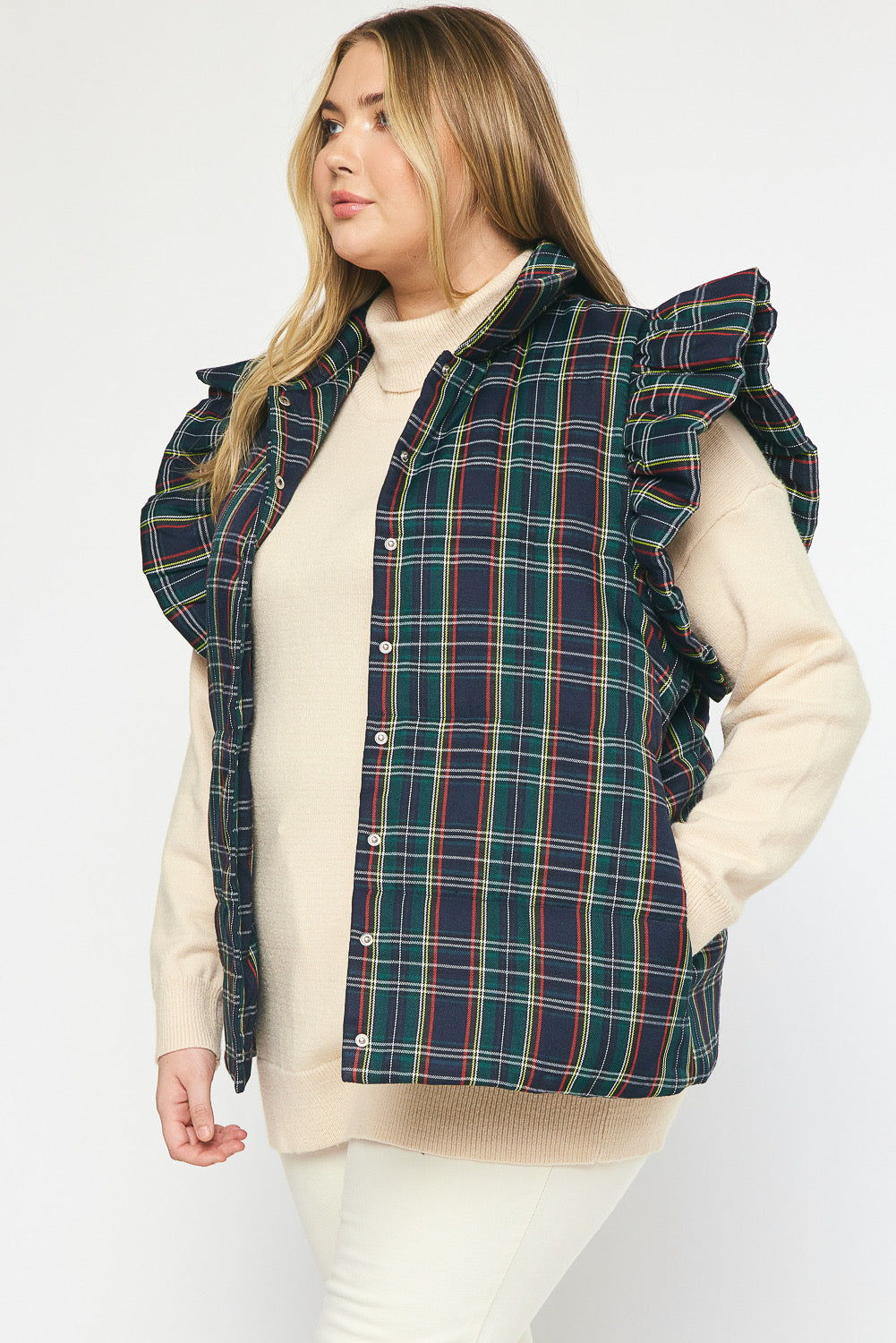 This stylish Navy Plaid Vest is designed to fit true to size for a comfortable and flattering fit. The classic plaid pattern adds a touch of charm to any outfit, making it a versatile addition to your wardrobe. Don't sacrifice style for comfort - this vest offers both!